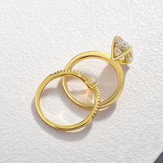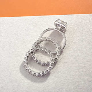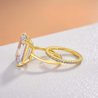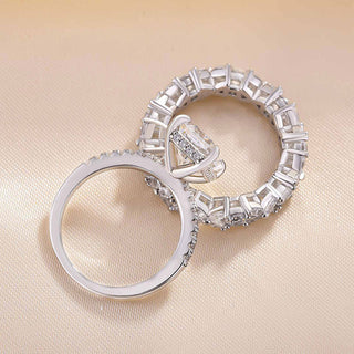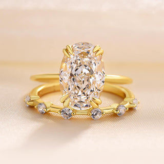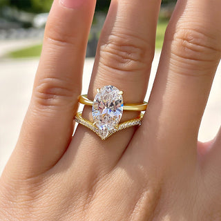 5.00CT Elongated Oval Cut Diamond Double Claw Solitaire Engagement Ring Set