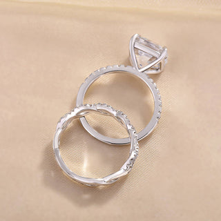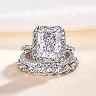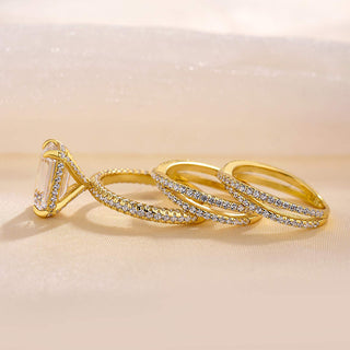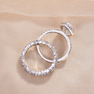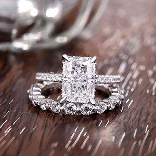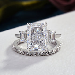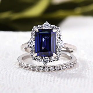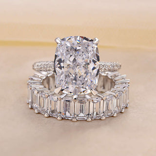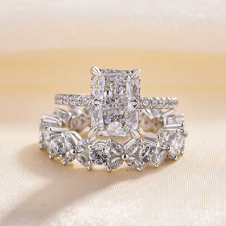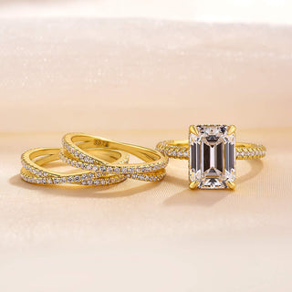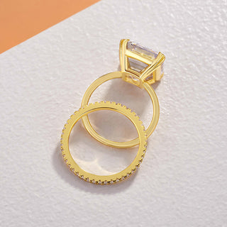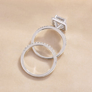 7.00CT Emerald Cut Diamond Hidden Halo Three Side Pave Engagement Ring Set