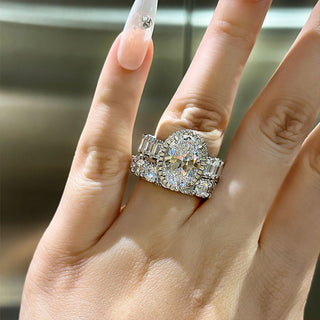 4.00CT Oval Cut Diamond Hidden Halo Three Side Pave Antique ENgagement Ring Set
