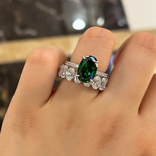 5.00Elongated Green Oval Cut Diamond Hidden Halo Pave Engagement Ring Set