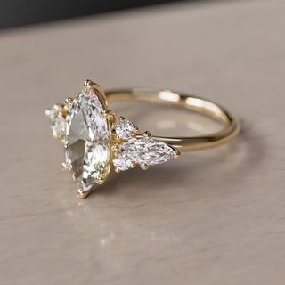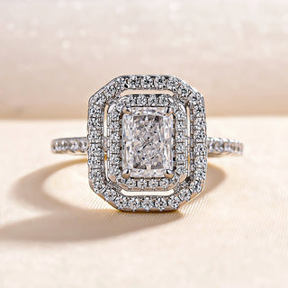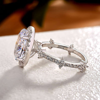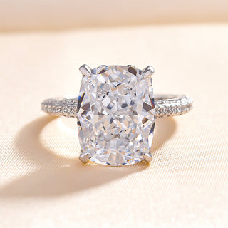 4.00CT Elongated Cushion Cut Diamond Hidden Halo Three Side Pave Engagement Ring