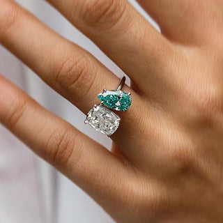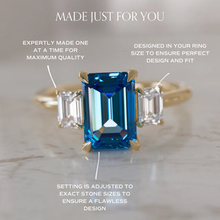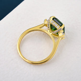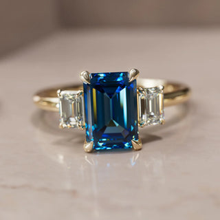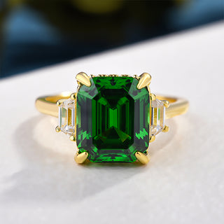 4.00CT Green Emerald Cut Diamond Three Stone Hidden Halo Engagement Ring